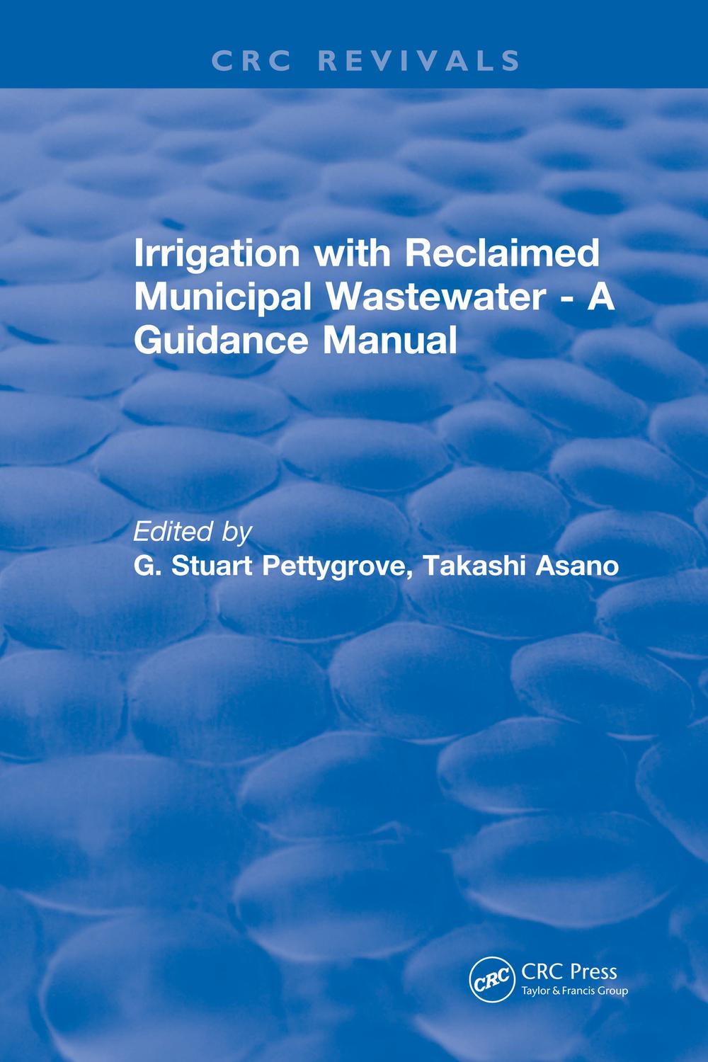 Irrigation with Reclaimed Municipal Wastewater – A Guidance Manual is for use in the planning, design, and operation of agricultural and landscape irrigation systems using reclaimed municipal wastewater. It is written for civil and sanitary engineers, agricultural engineers, and agricultural extension workers and consultants. The manual is also useful as a reference for public works officials, municipal wastewater treatment plant operators, and students at colleges and universities. The text emphasizes irrigation for the purpose of optimizing crop production; therefore, it includes detailed instruction in the calculation of crop water requirements. Furthermore, the benefits and limitations of using reclaimed municipal wastewater for agricultural and landscape irrigation are discussed, as are other topics of special interest, including water management for salinity and sodicity control, and economic and legal aspects of reclaimed wastewater irrigation.
