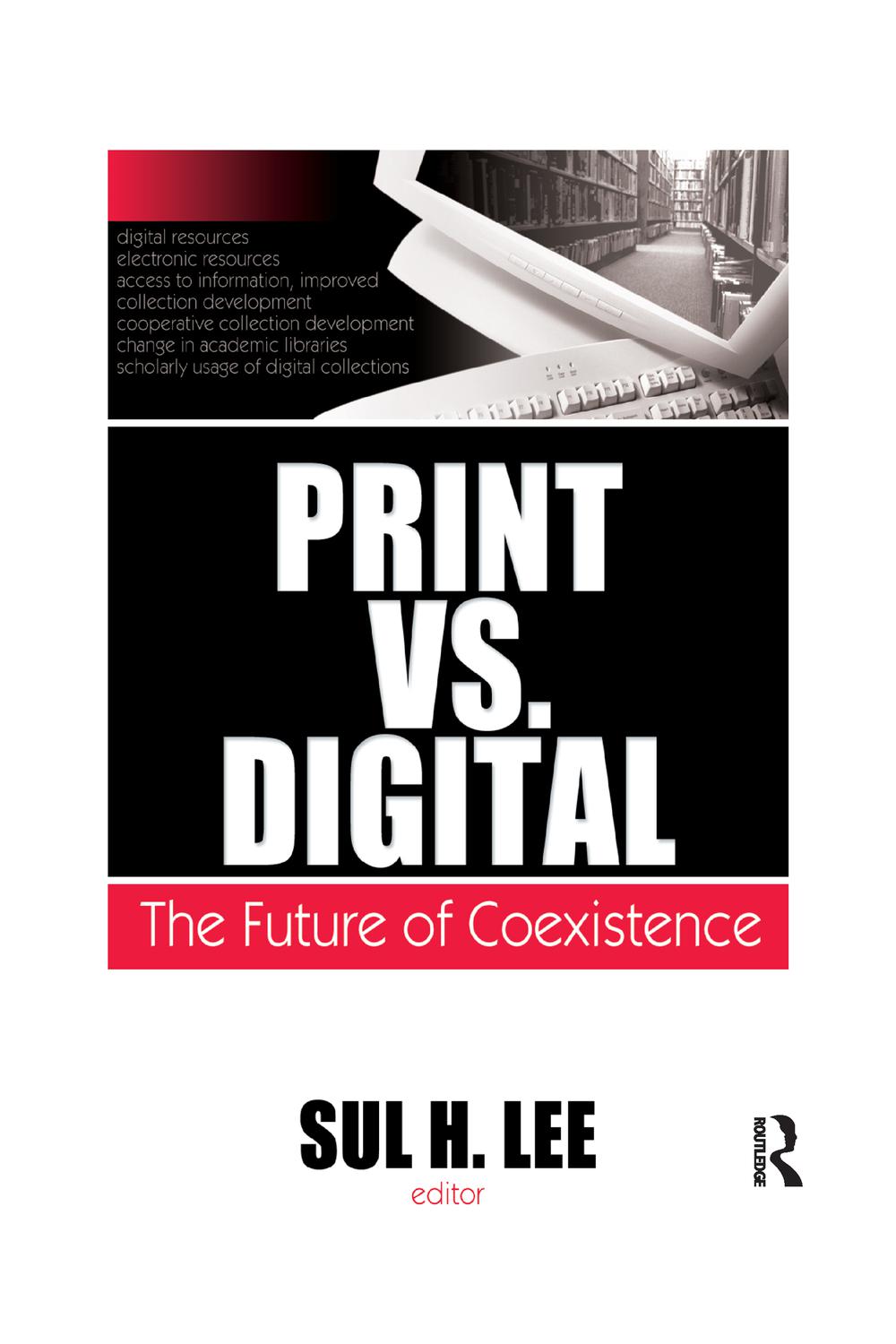 Print vs. Digital: The Future of Coexistence is a thought provoking, insightful resource on the future of libraries, invaluable for acquisitions, reference, and collection development librarians; and senior and mid-level administrators such as deans, directors, and department heads for public, special, and academic libraries.